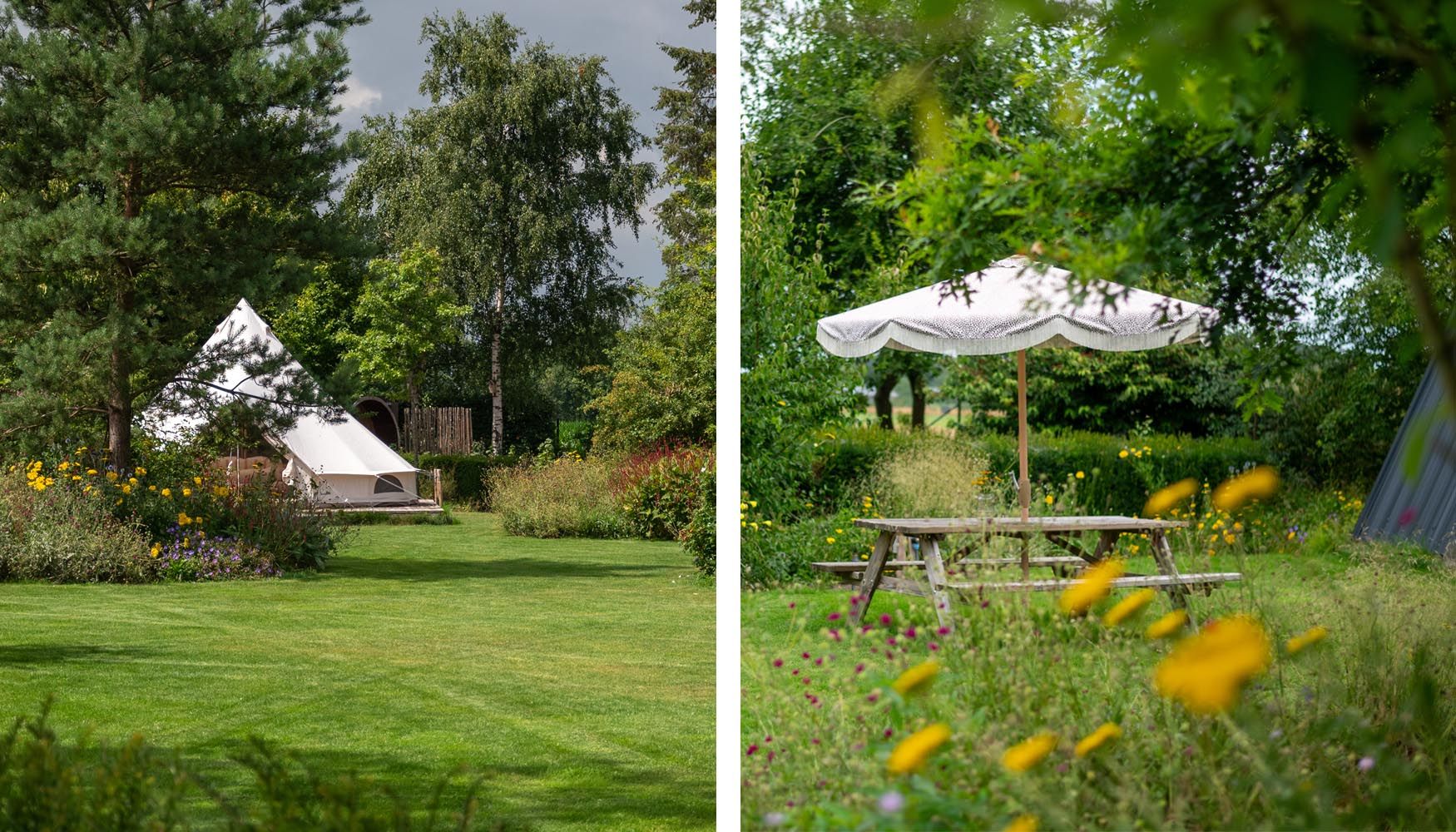 Voor de realisatie van de eerste fase van hun droomplan, een speel en kampeerveld, creëerden we grote organische gevormde borders. Deze voelen niet alleen natuurlijk aan, maar op deze manier ontstaan ook knusse hoekjes waar je de tent op kunt zetten.